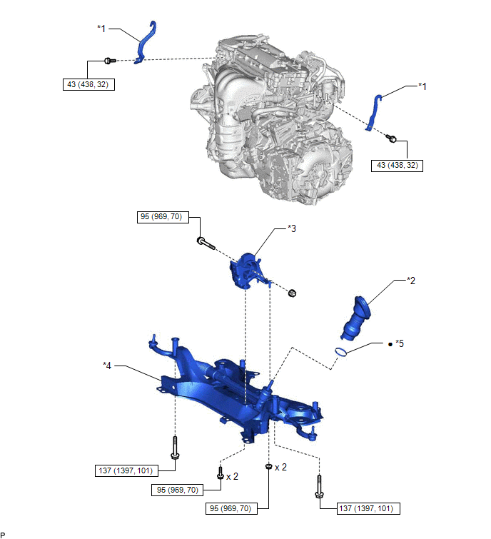 | *5 | TRANSMISSION OIL COOLER ASSEMBLY | *6 | ENGINE MOUNTING BRACKET LH |