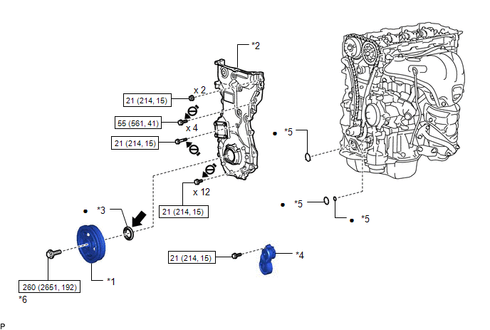 | *5 | GASKET | *6 | CRANKSHAFT PULLEY SET BOLT |