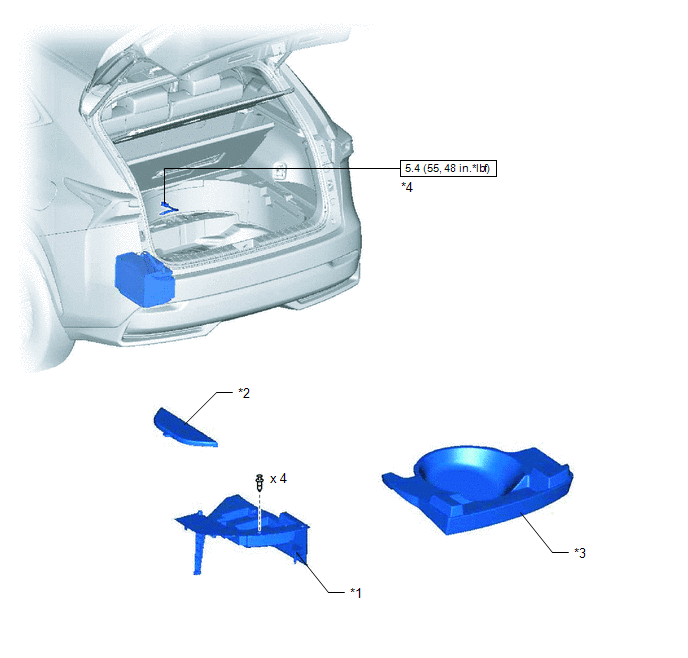 | *3 | REAR DECK FLOOR BOX | *4 | NEGATIVE AUXILIARY BATTERY TERMINAL |