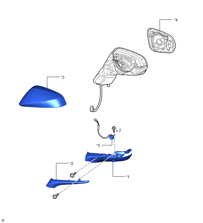 | *1 | LOWER OUTER MIRROR COVER LH | *2 | OUTER MIRROR BEZEL LH |
