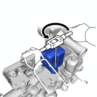 | (d) Using a screw extractor, remove the 2 bolts and steering lock actuator assembly from the electric power steering column sub-assembly. | |