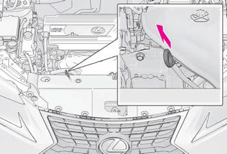 ■When adding washer fluid Do not add washer fluid when the hybrid system is hot or operating as washer fluid contains alcohol and may catch fire if spilled on the engine etc.