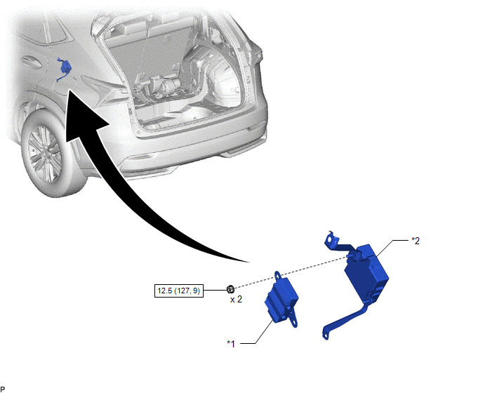 | *1 | FUEL PUMP CONTROL ECU ASSEMBLY | *2 | PARKING BRAKE ECU ASSEMBLY |