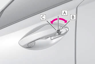 If communication between the electronic key and vehicle is interrupted or the electronic key cannot be used because the battery is depleted, the smart access system with push-button start and wireless remote control cannot be used. In such cases, the doors can be opened and the hybrid system can be started by following the procedure below.