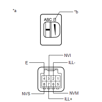| Auxiliary battery positive (+) → 8 (NVS) Auxiliary battery negative (-) → 4 (E) | Vehicle sound switch on | Switch indicator comes on |
