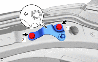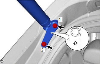 | (5) Tighten the 2 bolts to install the back door upper damper stay bracket LH. HINT: Tighten the bolts in the order shown in the illustration. Torque: 18 N·m {184 kgf·cm, 13 ft·lbf} |