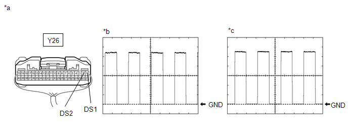(a) Using an oscilloscope, check the waveform of each terminal from the rear of the multiplex network door ECU Y26 connector.