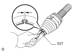 (a) Install SST to the rear drive shaft outboard joint boot clamp LH, and then while pressing the outboard joint boot, slightly tighten the SST bolt.