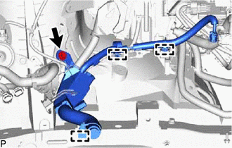 | (a) Slide the hose clip and remove the No. 3 inverter cooling hose from the hybrid vehicle transaxle assembly. |