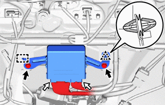 (b) Detach the clip and guide, and remove the multiplex network door ECU.