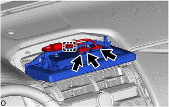 | (2) Move the multi-display assembly with bracket as indicated by the arrow shown in the illustration to detach the 2 clips. |