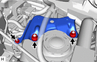 | (a) Remove the 2 bolts and reservoir bracket. |