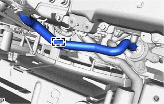 | (a) Slide the clip and disconnect the water by-pass pipe from the radiator reservoir. |