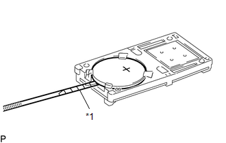 | (b) Remove the transmitter battery (lithium battery: CR2412). NOTICE: When replacing the transmitter battery, before starting work, remove static electricity that has built up in the body by touching, for example, the vehicle to prevent the electrical transmitter from being damaged. | |